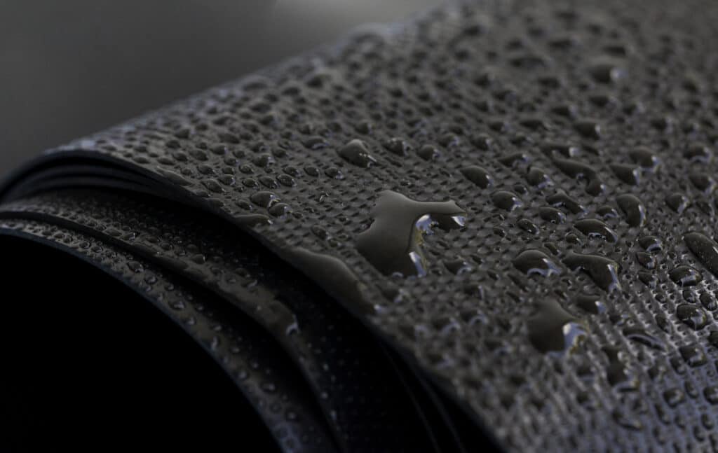 Une membrane en caoutchouc hyper élastique. Elle résiste aux UV, aux racines et aux humeurs de la météo belge. Moins rigide que le bitume, mais super efficace !